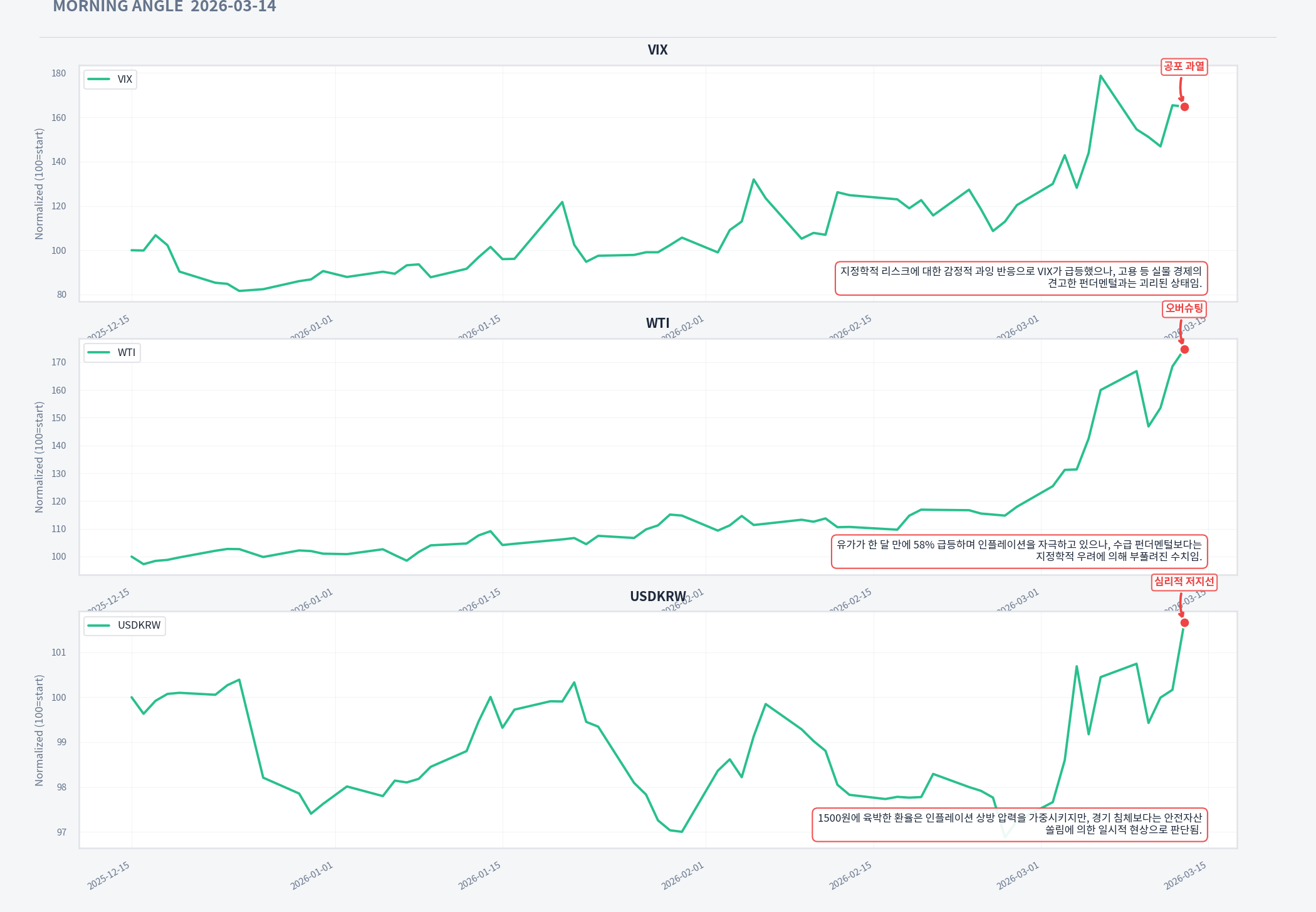 정치적 발언에 따른 유가 안정세와 증시의 반등 시도가 나타나며 공포 내러티브와 실제 자산 가격의 변동성이 충돌하고 있음.