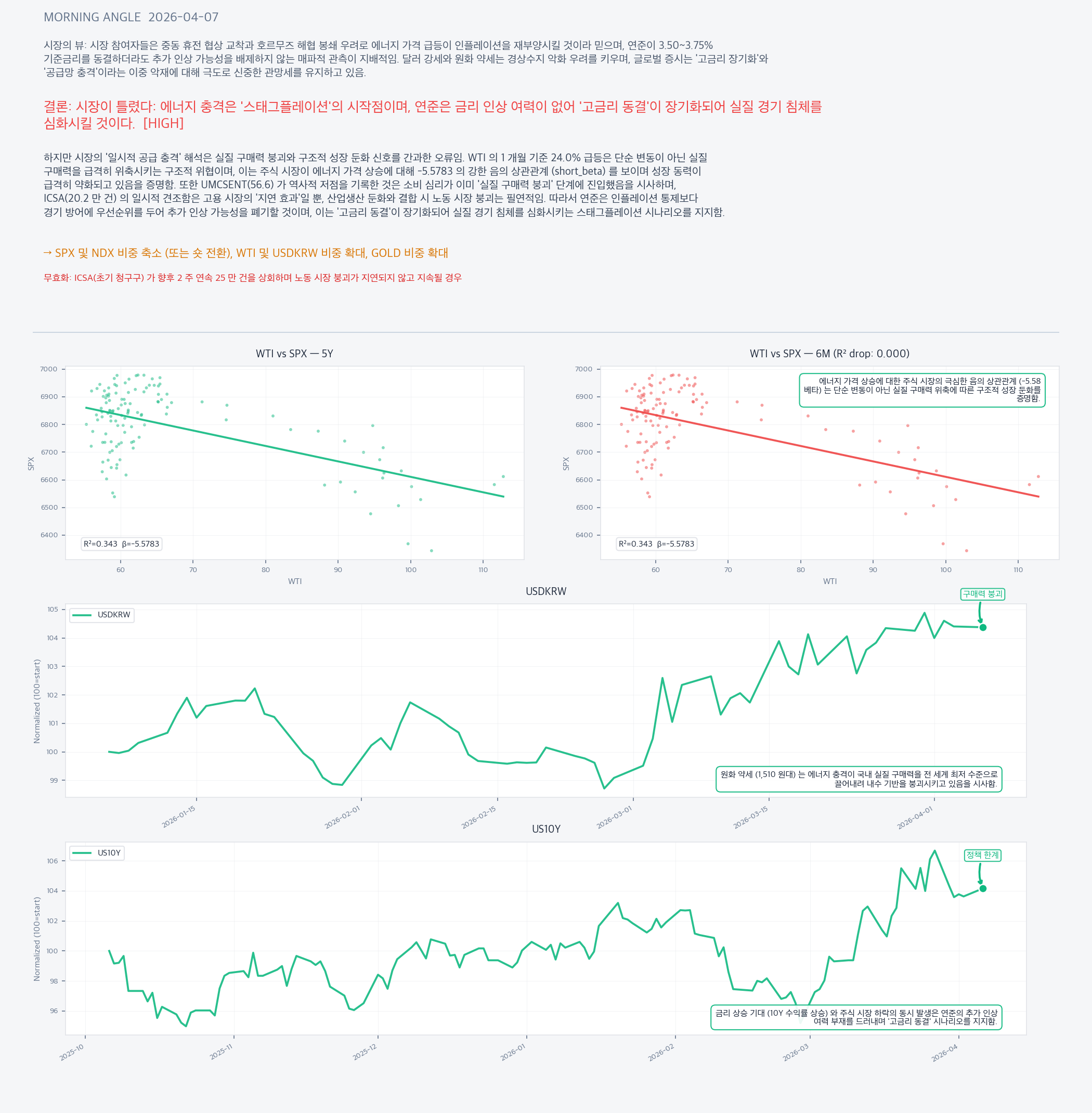 SPX 및 NDX 비중 축소 (또는 숏 전환), WTI 및 USDKRW 비중 확대, GOLD 비중 확대