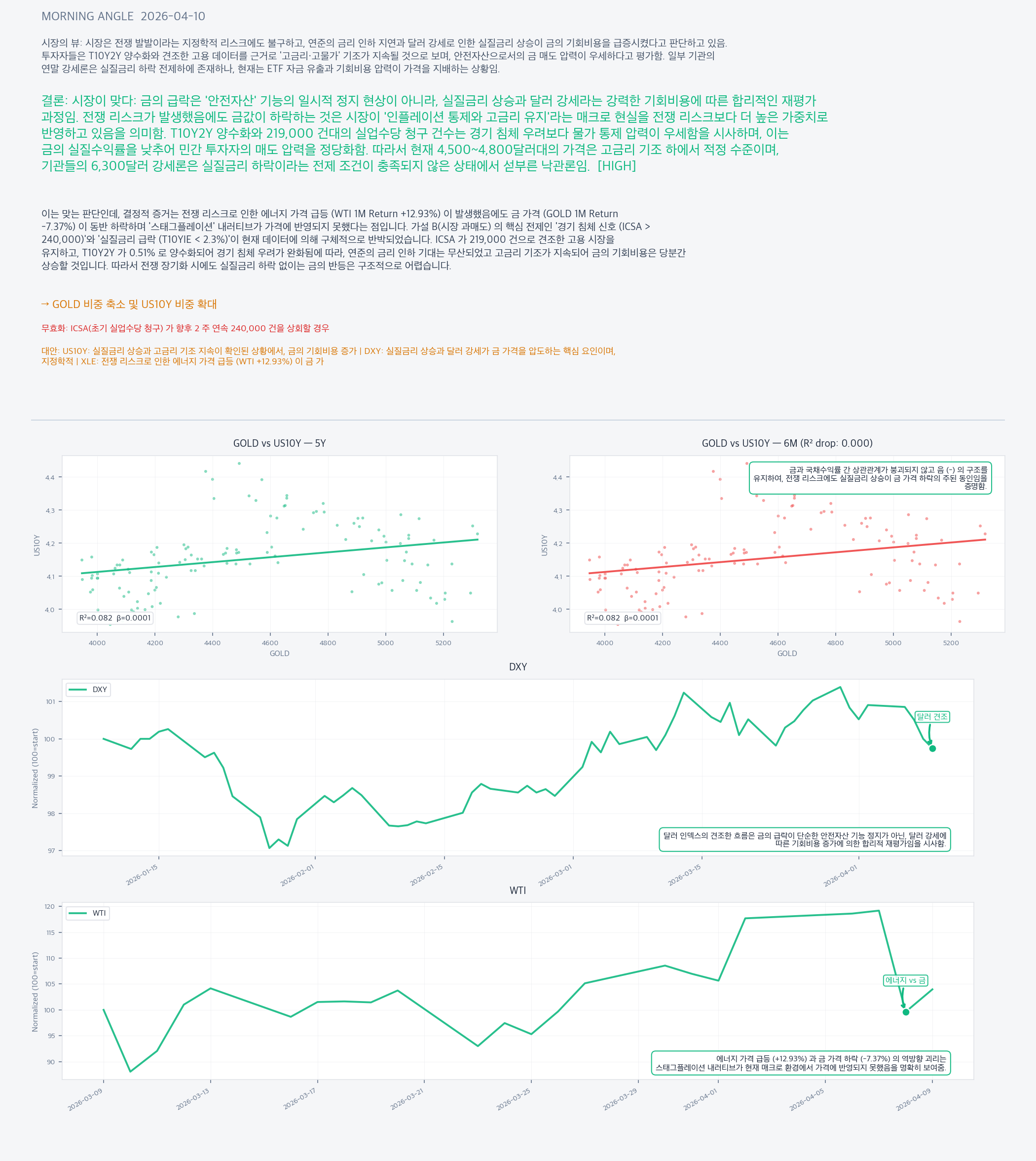 지정학적 위기 발생 시 금의 안전자산 기능 부재라는 내러티브와, 실질금리 상승과 달러 강세로 인한 기회비용 증가가 가격을 압도하는 매크로 현실 사이의 괴리임.